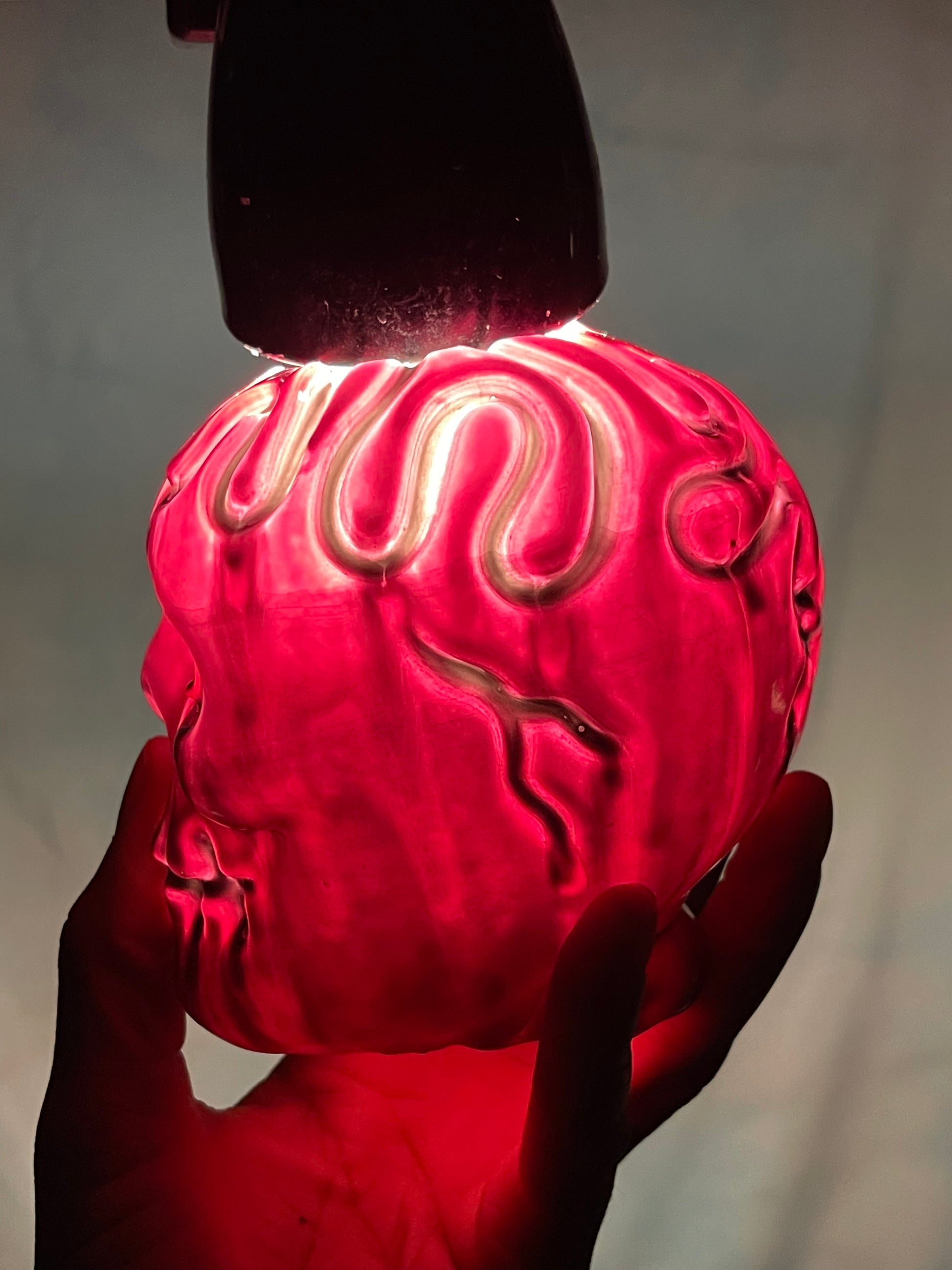 Vela luminosa tallada a mano única. Fabricada con cera de parafina al 100 %; sin aroma. Tallada completamente a mano.