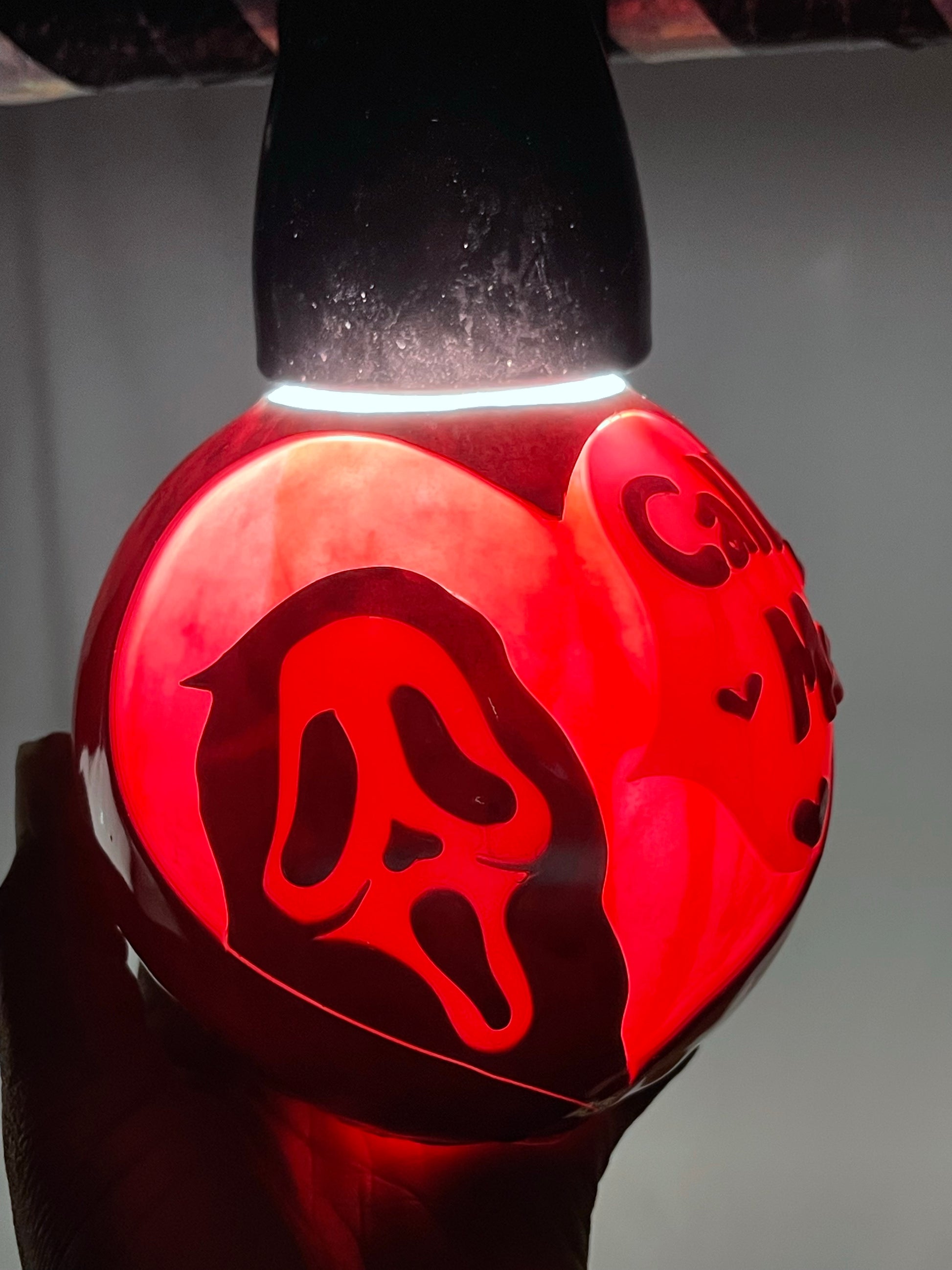 Vela luminosa tallada a mano única. Fabricada con cera de parafina al 100 %; sin aroma. Tallada completamente a mano.