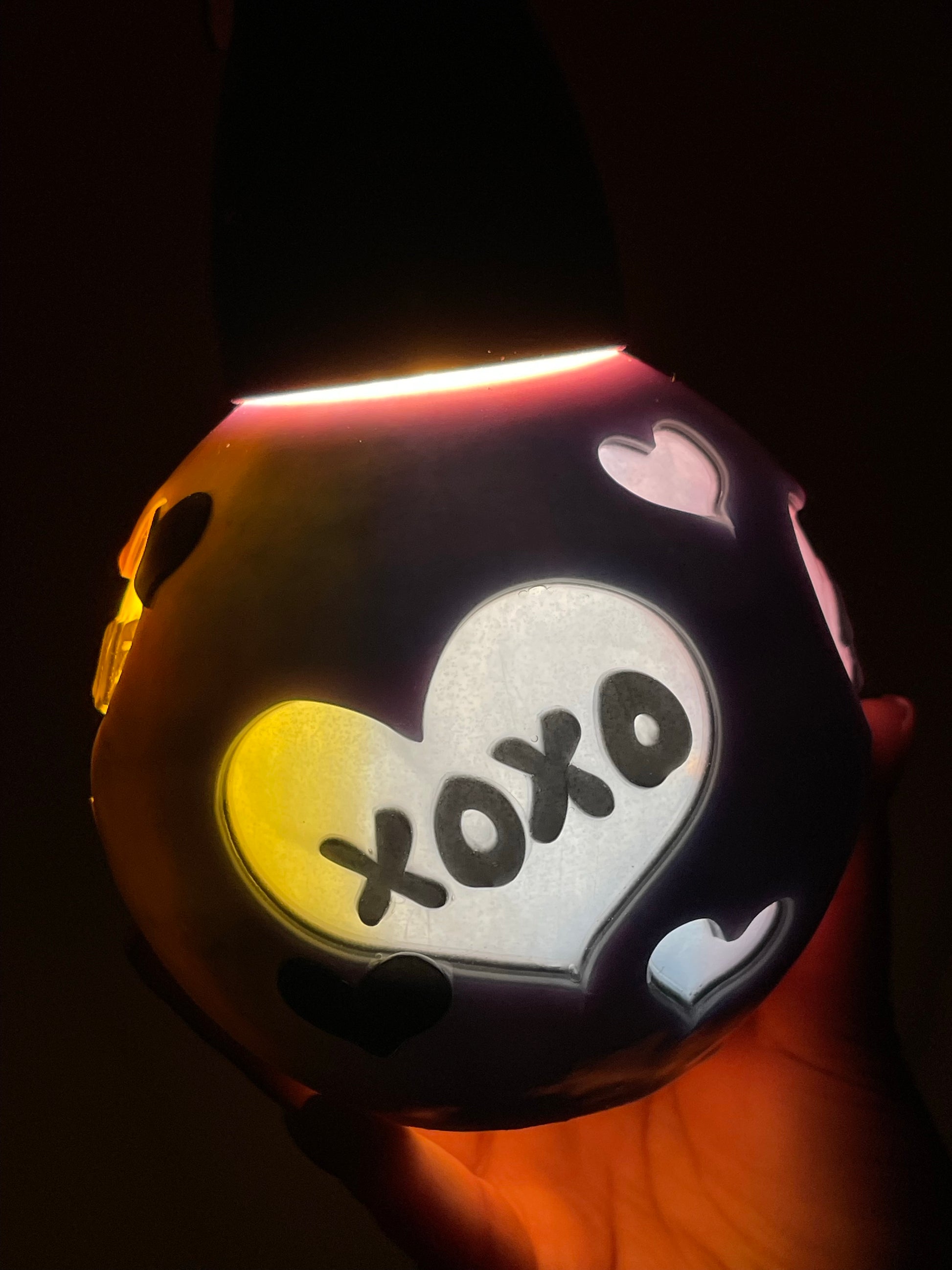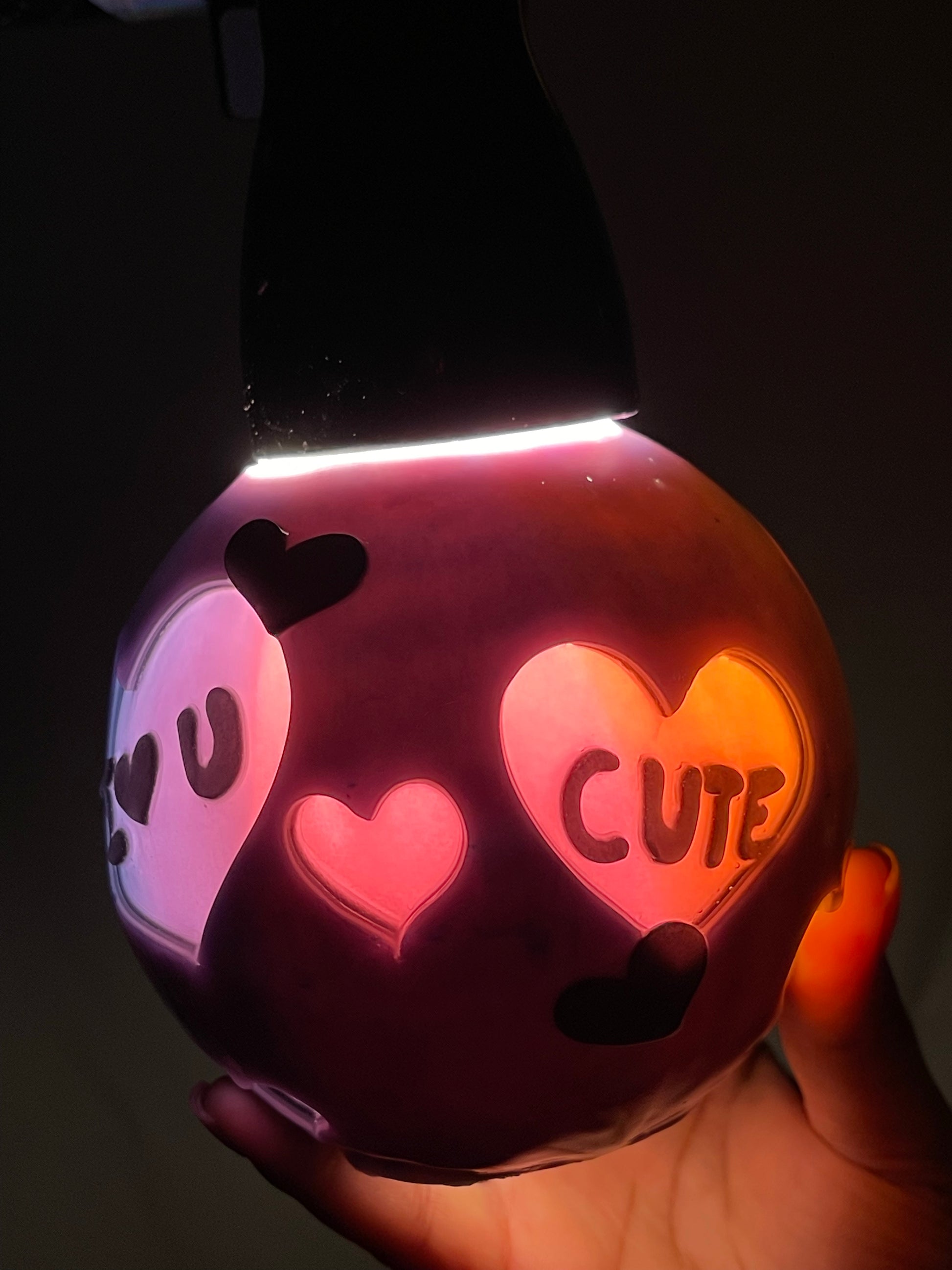 Vela luminosa tallada a mano única. Fabricada con cera de parafina al 100 %; sin aroma. Tallada completamente a mano.