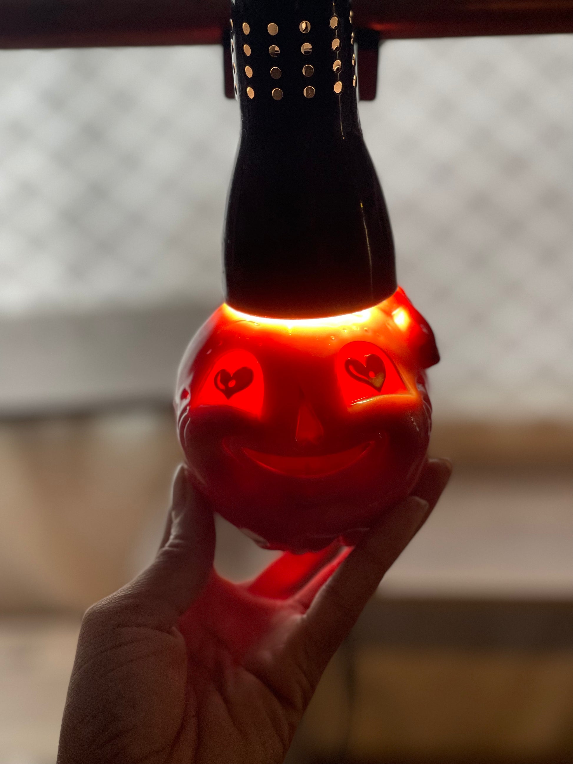 Vela luminosa tallada a mano única. Fabricada con cera de parafina al 100 %; sin aroma. Tallada completamente a mano.