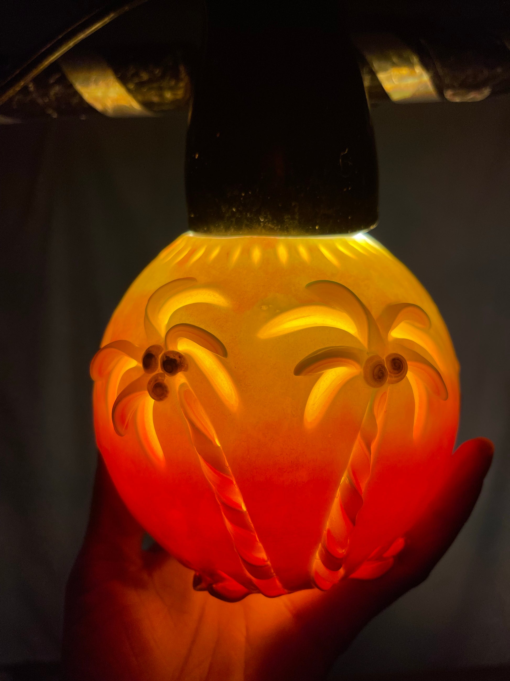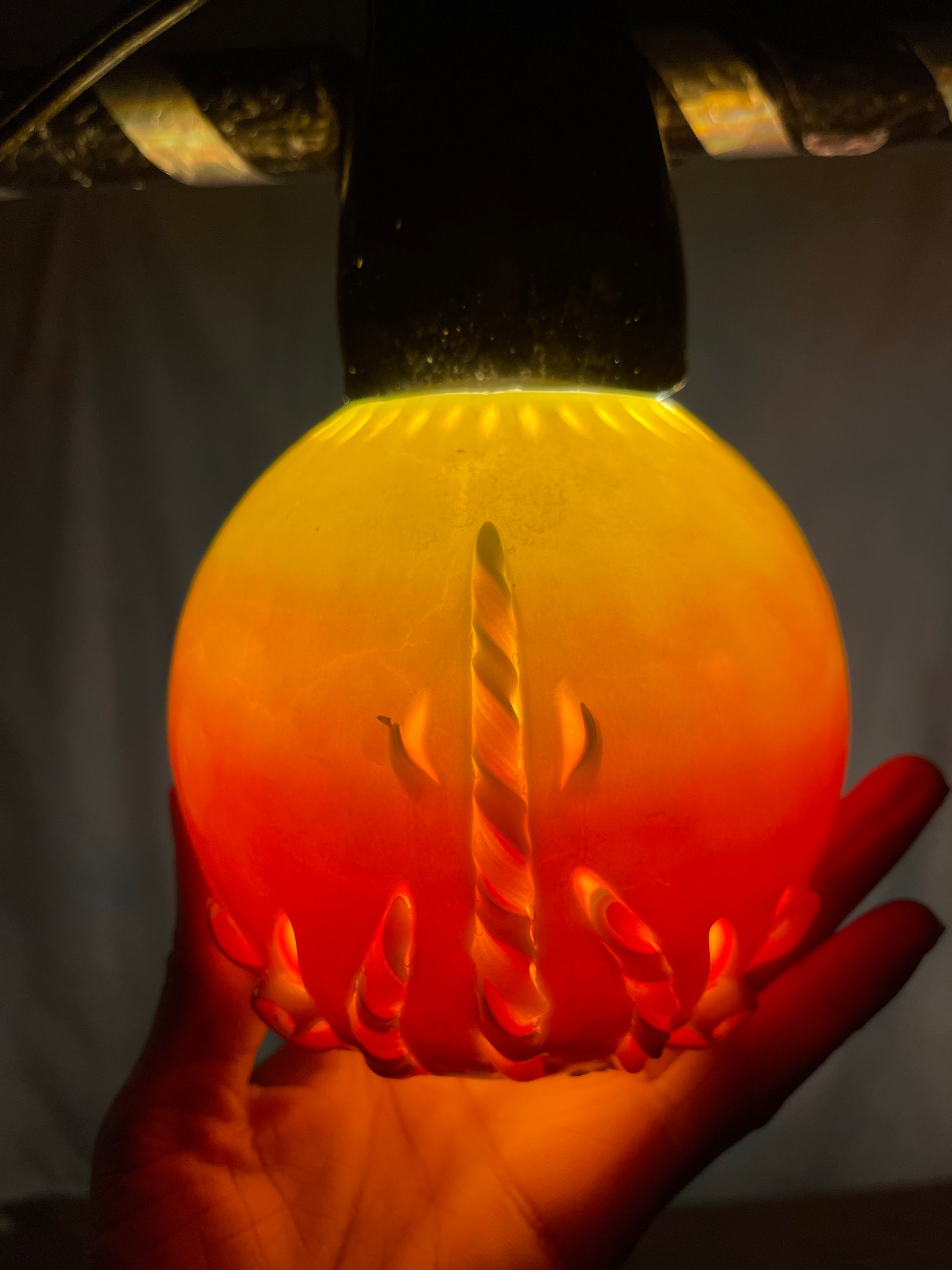 Vela luminosa tallada a mano única. Fabricada con cera de parafina al 100 %; sin aroma. Tallada completamente a mano.