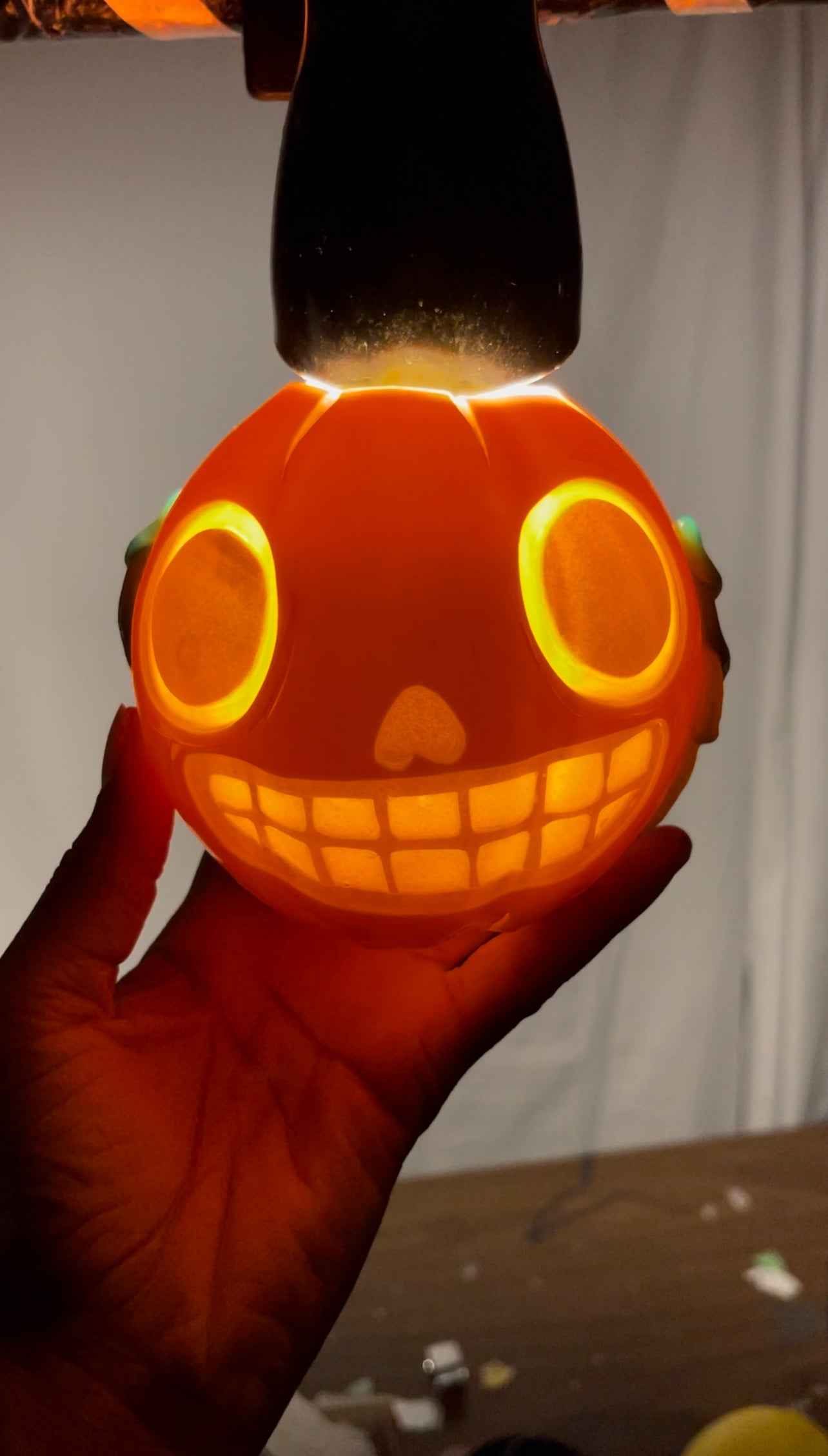 Vela luminosa tallada a mano única. Fabricada con cera de parafina al 100 %; sin aroma. Tallada completamente a mano.
