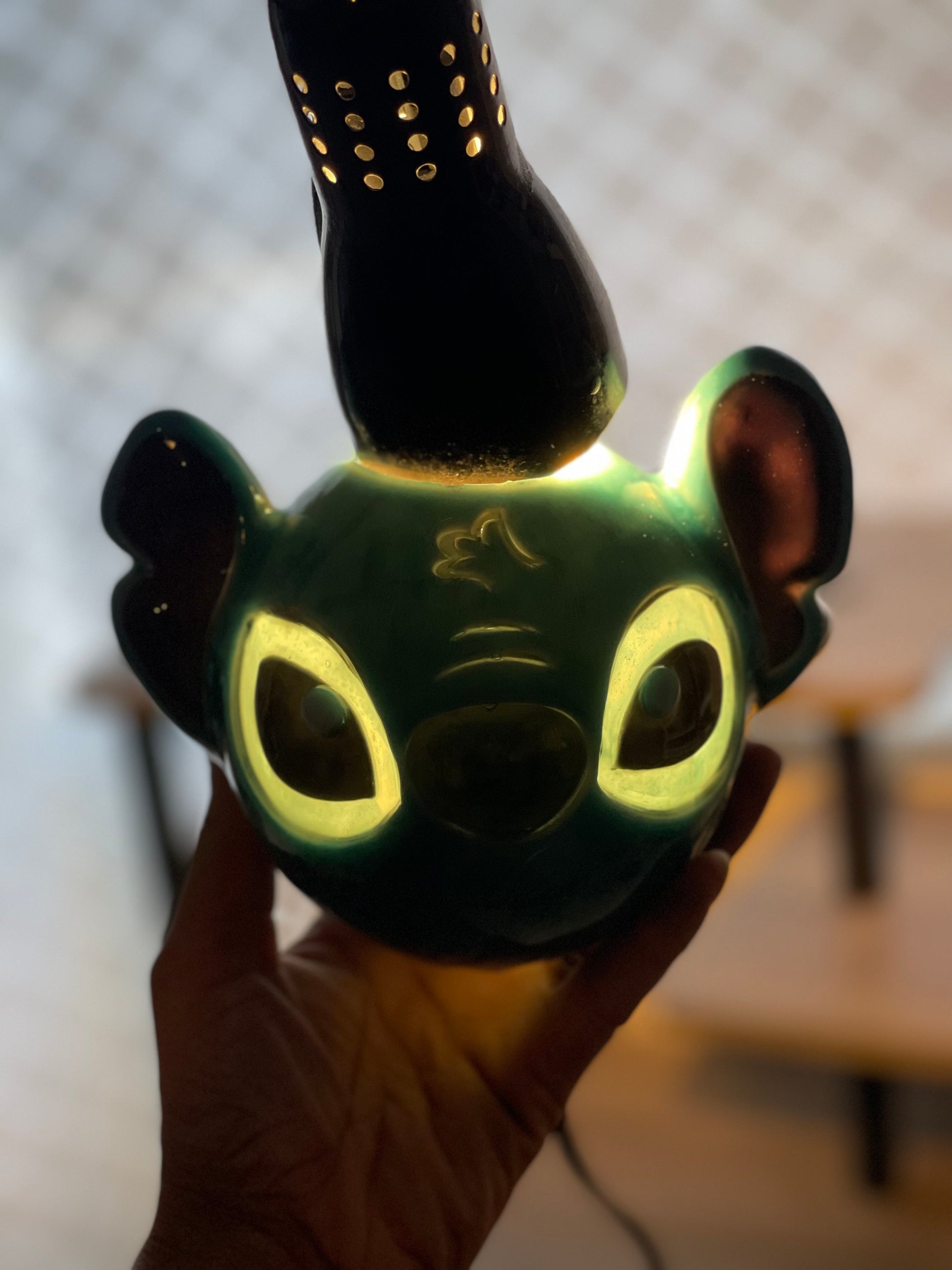 Vela luminosa tallada a mano única. Fabricada con cera de parafina al 100 %; sin aroma. Tallada completamente a mano.