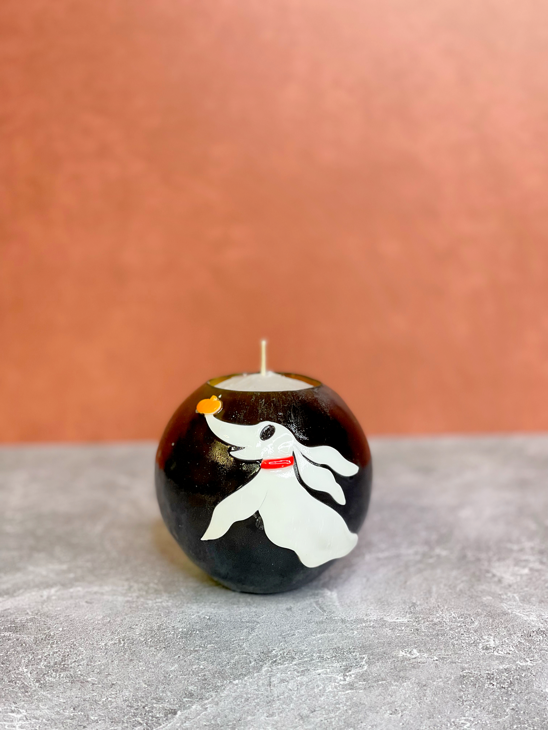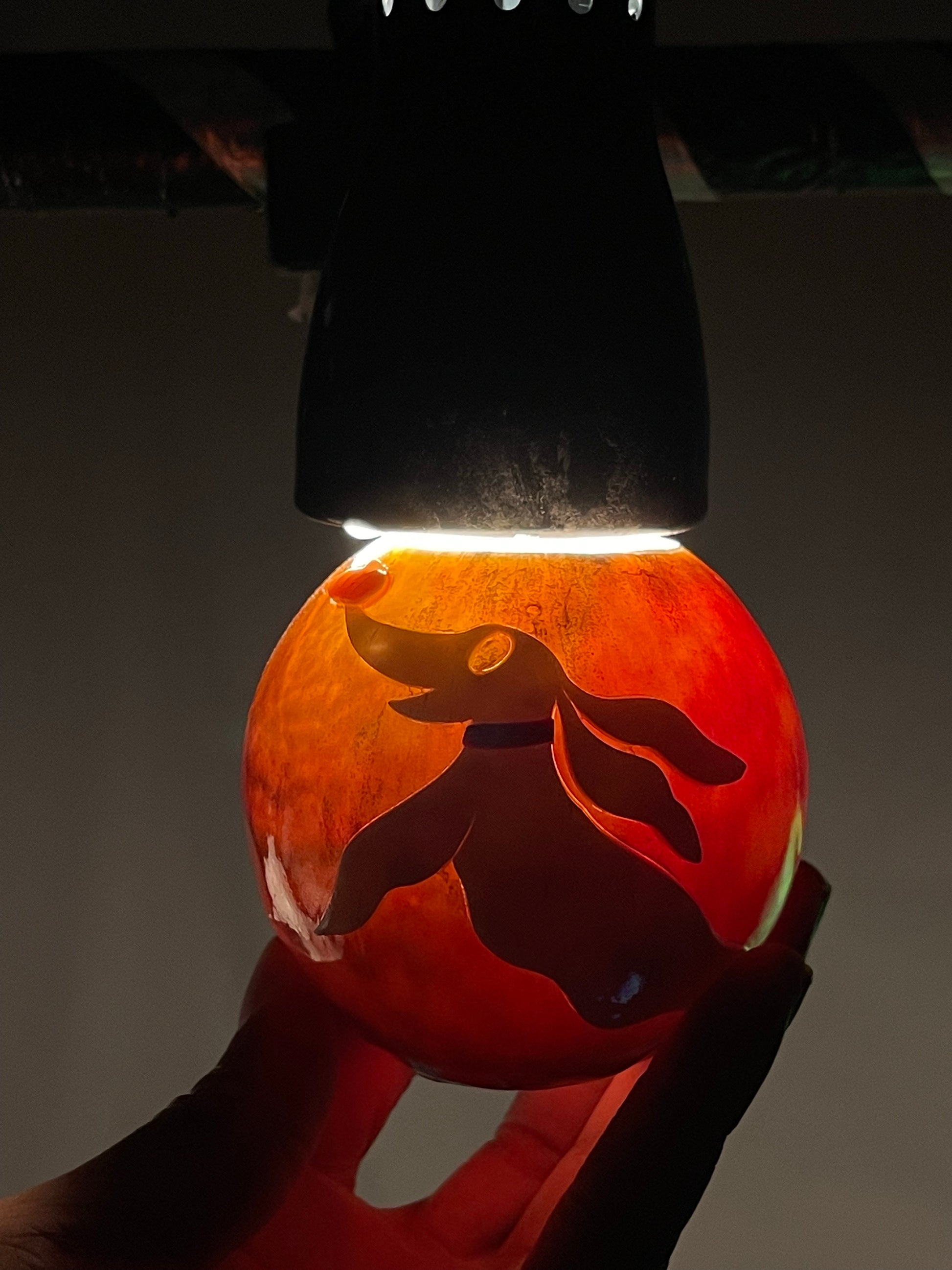 Unique hand-carved glowing candle. Made of 100% paraffin wax; scent free. Carved completely free-hand.