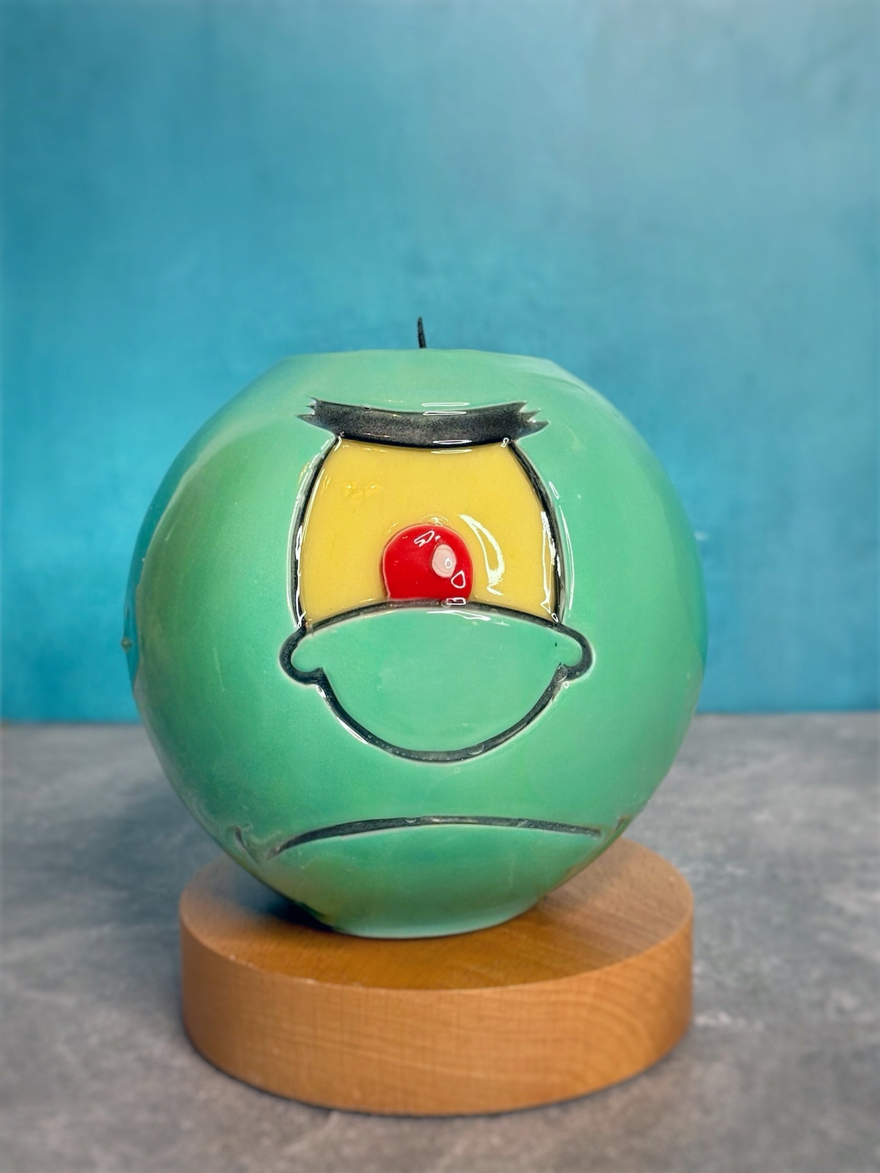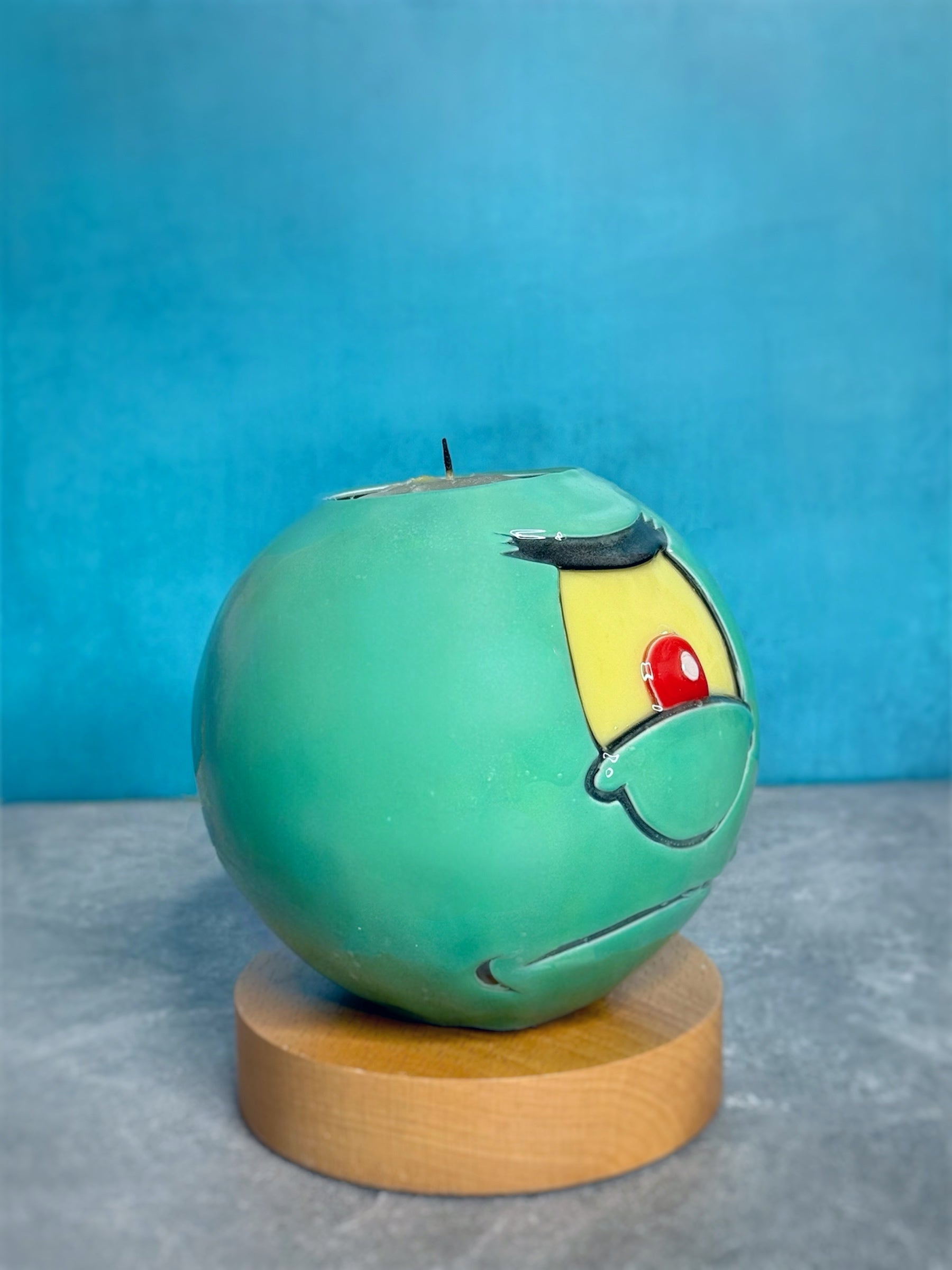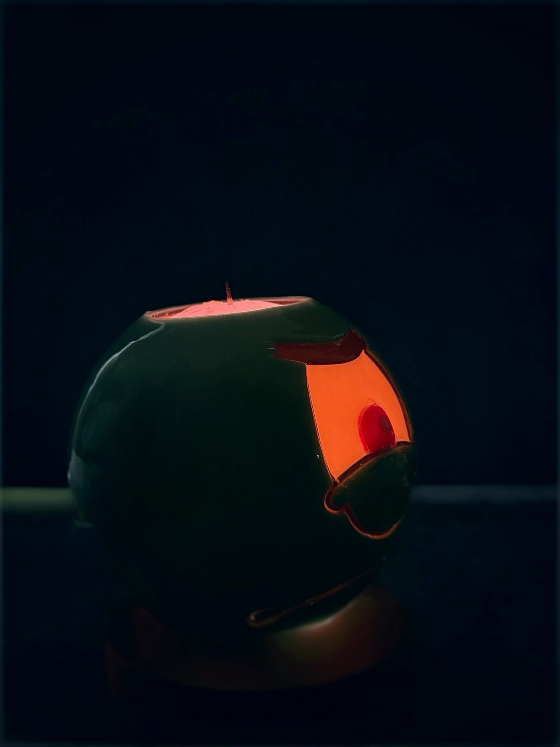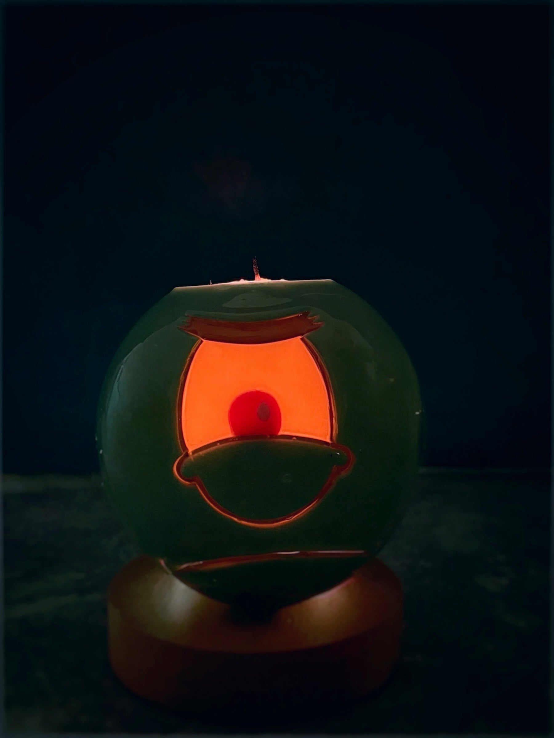 Unique hand-carved glowing candle. Made of 100% paraffin wax; scent free. Carved completely free-hand.